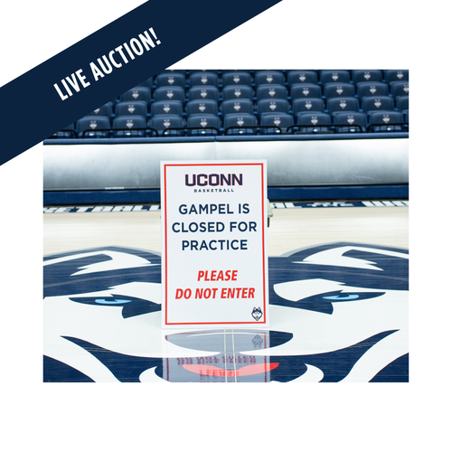 Basketball game in progress inside a large indoor arena with fans and players on the court.